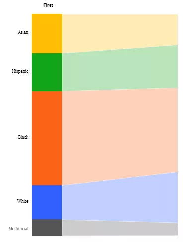 與初期的10萬例死亡人數相比,白人在最近的死亡人數中所佔的比例要大得多。