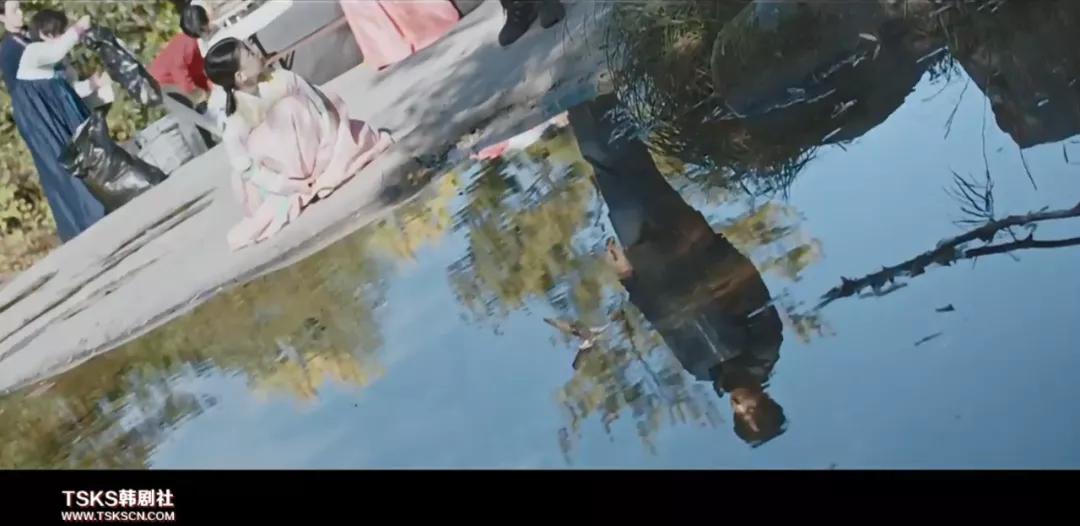 注意看兩人對話時的池面,這個小女孩……沒有倒影。