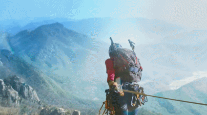 看着鏡頭定住,就差一聲“咔嚓”,觀眾就能完整體驗一把登山廣告拍攝現場。