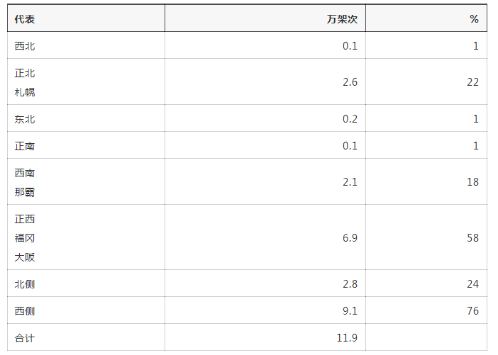 其中,西側航班約佔四分之三,東側航班約佔四分之一。