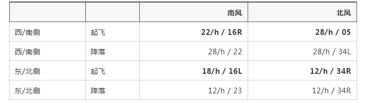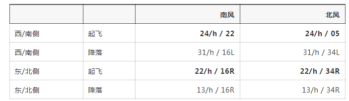 因此,機場小時容量和時刻的供給情況隨着當時的盛行風而變化。