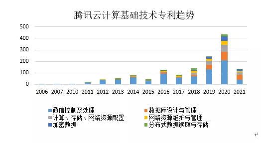 圖:騰訊雲計算基礎技術專利趨勢。來源:知產寶數據研究中心