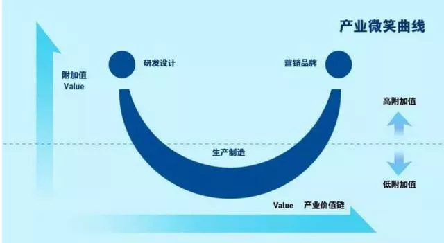 這種過渡不會自然發生,它需要通過技術進步帶動實體經濟從勞動密集型和資本密集型時代進入技術密集型時代。這意味着,中國實體經濟需要從“製造”全面拐入“智造”,最終在未來一個週期內徹底突破微笑曲線的底部,向高附加值經濟形態邁進。