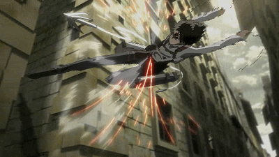 可以看出這個畫面有三層:最前一層是波吉和戴達,中間一層是多瑪斯,背景層是士兵和建築。三個畫層分別以不同的速度移動,加上前實後虛造成景深效果,突出了前景的人物動作。