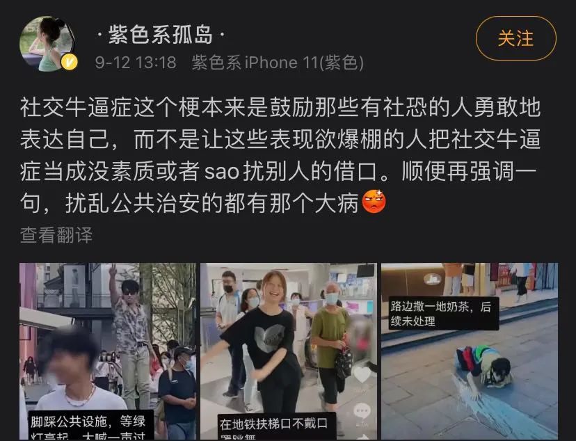 EDG奪冠引發的網絡亂象很容易讓人想到前一段被濫用的“社交牛逼症”。這個流行梗本來是為了幫助社恐年輕人甩開包袱、放飛自我,“只要我不尷尬,尷尬的是別人”。然而,隨着“社交牛逼症”火遍全網,短視頻平台上出現了大量借“社交牛逼症”之名在公開場合公然騷擾、碰瓷別人,將沒素質當有趣的跟風視頻,引發了很多人的反感。
