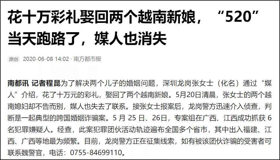 那一陣子,當地越南媳婦集體出逃了,共計詐騙了近百萬元的彩禮,他的越南妻子就是領頭人。
