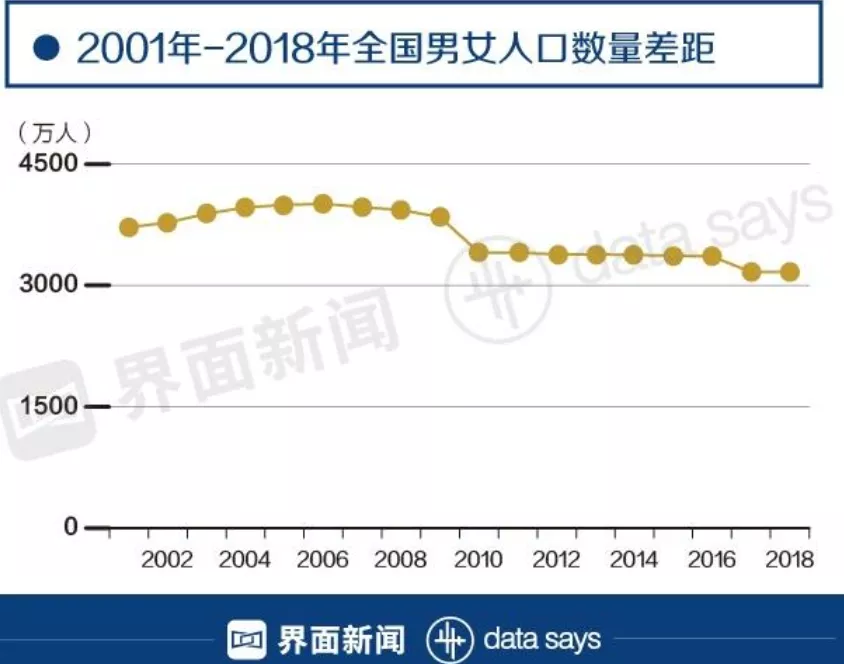 也就是説近十年來,男性一直比女性多了3400萬人。