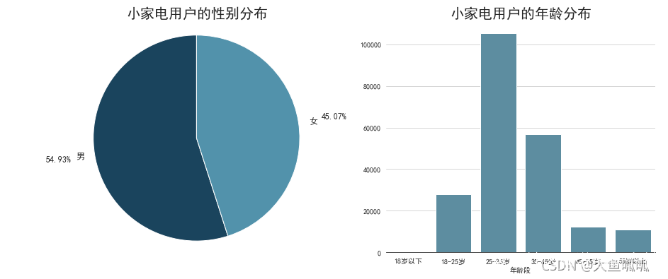 再聚焦到具體的用户性別以及年齡分佈上,據《京東平台小家電用户畫像分析報告》顯示,對於小家電的用户以男性居多,但男女比例相差不大;在年齡方面,小家電的用户主要集中在45歲以下,多以25-35歲的青年人為主。