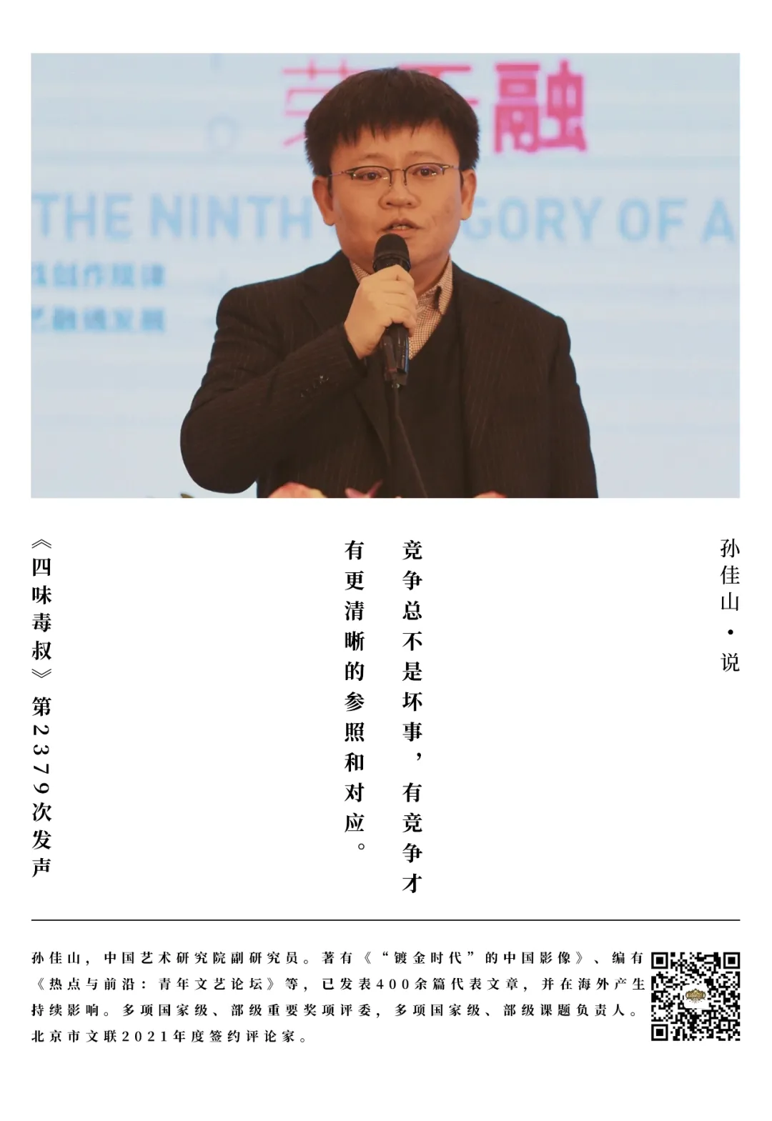 所以這個情況比較複雜,並不是説我們傳統的主流文化或者主流媒介,簡單一兩句話就能概括、就能認知的,這裏邊有一個非常複雜的這麼一個文化競爭的關係。文化競爭不只是在傳統的電影、電視領域,也不只是在短視頻領域,也包括長視頻。