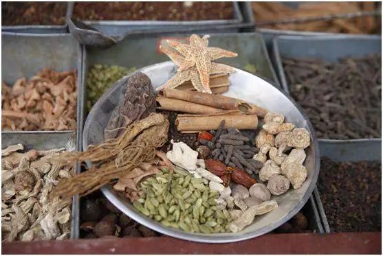 維吾爾藥茶是將高良薑、小豆蔻、肉豆蔻、肉桂、丁香、孜然、胡椒、乾薑、草澄茄等天然植物經科學加工磨製而成。