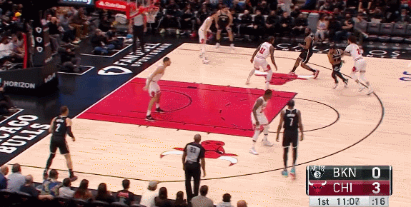 1分鐘之後,納什覺察到情況不妙,趕緊把杜蘭特拿了回來,但此時籃網已經被公牛打了一波11-0。節奏、速度和氣勢都在公牛一方了。