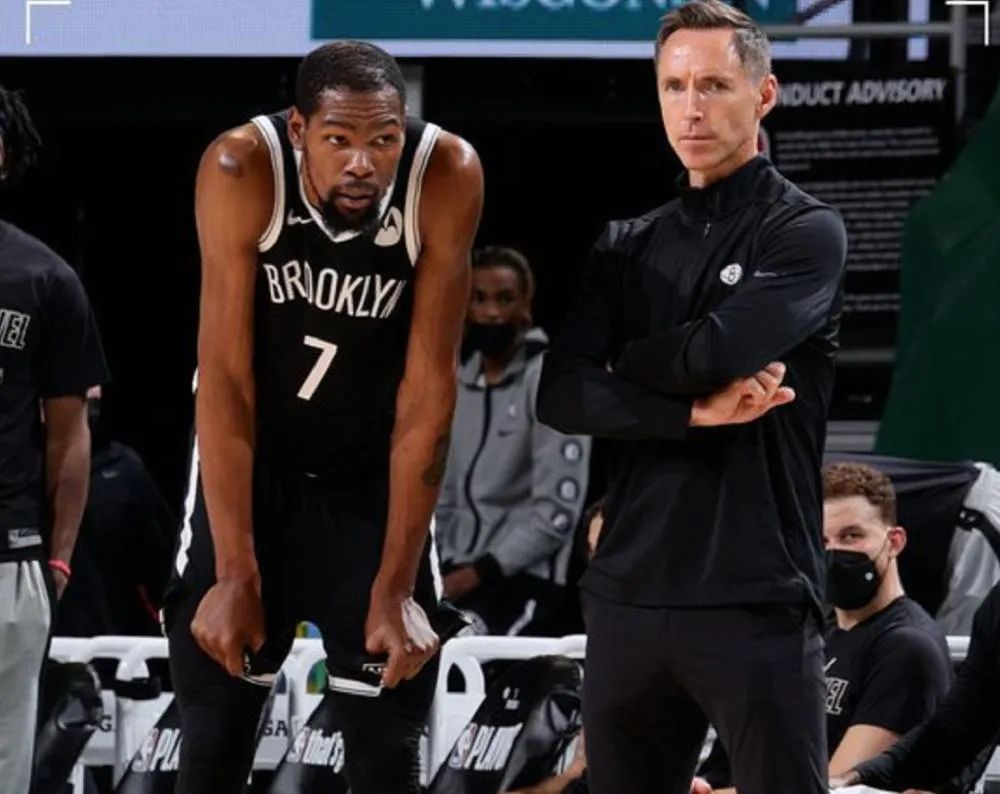 籃網開局不到4分鐘,三分唰唰進,而且是杜蘭特、哈登和喬哈各漏一個空位,顯然不太對勁,多諾萬教練很快叫了暫停。