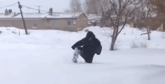 比如,在路上遇到一個積雪的樓梯,就可以用最快的速度從頂部滑到底部。