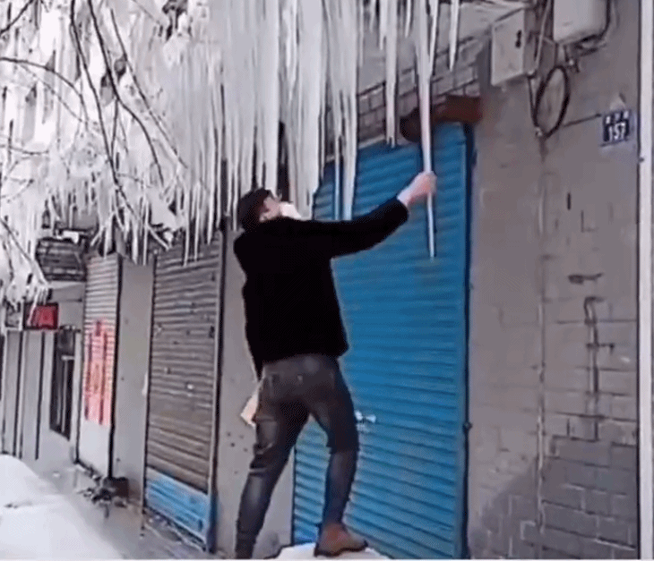 而冰掛是真正的冰,在樹上重的像秤砣,掉下來又堪比大型暗器。