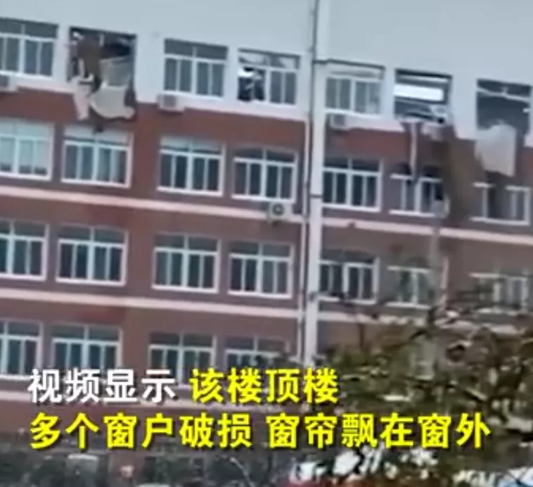 瀋陽某中學的房頂被雪壓得局部塌陷,多個窗户破損;