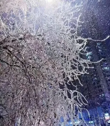 敲黑板,凍雨形成的“冰掛”跟霧凇不同,後者是一種輕飄飄的乳白色冰晶沉積物,落下來像疏鬆的雪。