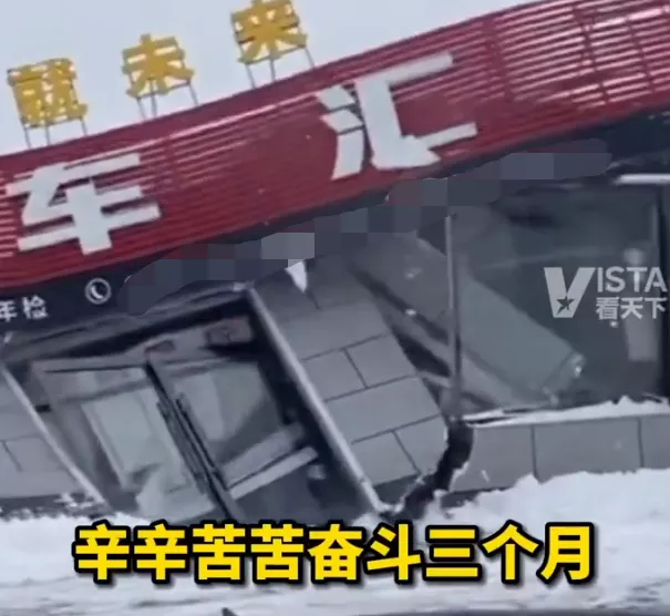 網上有個流傳很廣的視頻,是二手車行的正門在雪中整個塌下來。