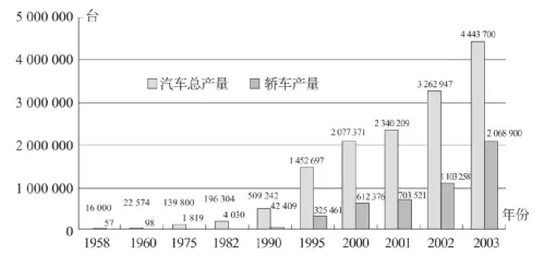 中國汽車銷量在1992年突破100萬輛,2000年突破200萬輛,2003年突破400萬輛——超過全亞洲銷量的1/6,在20年間翻了20倍以上。