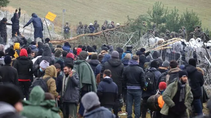 **11月8日大量民眾聚集在白俄羅斯與波蘭間邊境地區,試圖強行入境波蘭,遭波蘭邊防人員攔截。波蘭已將邊境值守人員增至1.2萬人。**目前仍有數千移民在該地區伺機越境。