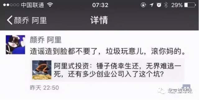 文章發佈當晚,阿里系“公關天團”將矛頭對準野馬財經創始人李曉曄,在朋友圈及多個微信羣中對李曉曄和野馬財經進行了侮辱性的謾罵。