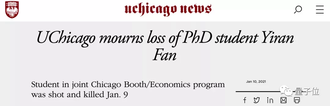 而在今年更早時,還有一位同樣在芝加哥大學留學的華人遭受槍擊而亡。
