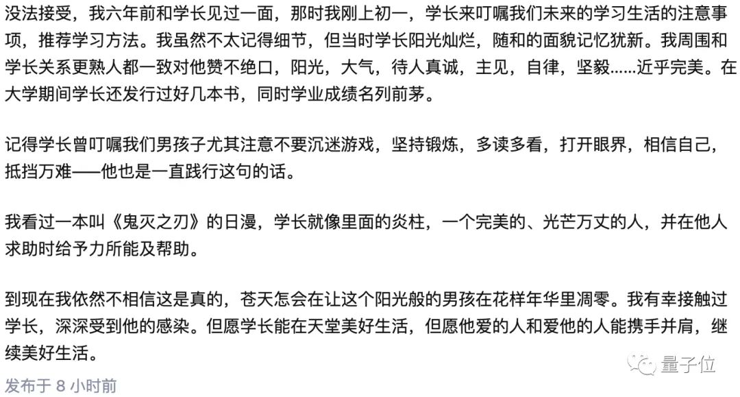 除去這些關係親密、有直接聯繫的同學朋友們,也有僅僅幾面之緣的後輩在知乎表示“無法接受”。