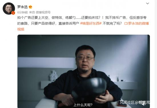 前不久,他接了某家一條廣告,狠狠地罵了一通別人家的廣告:“拍個廣告還要上太空、做特效、練顛勺……還要拍牀戲?”