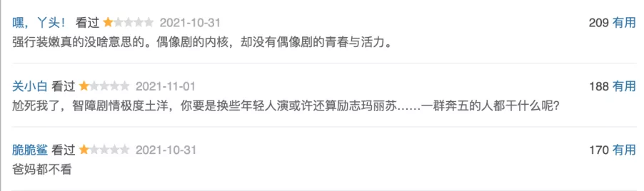 可我低估了觀眾對影視劇的訴求,竟然可以讓這部劇的收視率穩步上升,竟然出現了“口碑逆轉,收視率破1,《星辰大海》或成2021年年度劇王”的詞條。