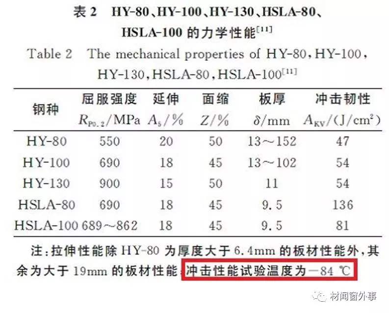 貼一張美國艦船用鋼力學性能表,這些都是典型的美國航母和潛艇用鋼。其中HY系列是調質鋼,由於碳當量過高,焊接困難,正逐漸被HSLA系列低合金高強鋼取代。HSLA是低碳、銅沉澱硬化鋼,焊接前無需預熱或僅需低温預熱,極大地簡化了造船工藝,降低了成本,是目前先進艦船用鋼的代表。