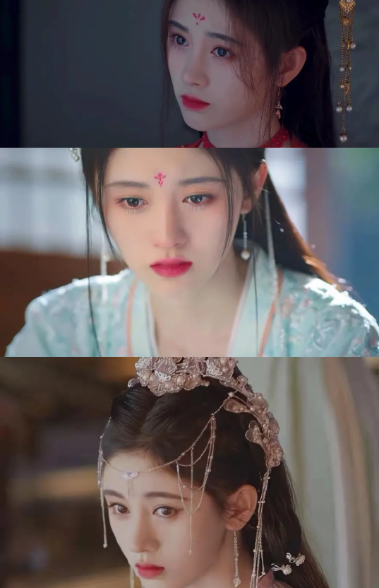 鞠婧禕的半永久妝容就是這套邏輯下的產物。有網友把鞠婧禕多部古裝劇拼圖,除了珠鏈掛飾之外,並看不出這幾部絲芭傳媒出品的劇集有任何本質上的區別,甚至連表演風格都一模一樣。