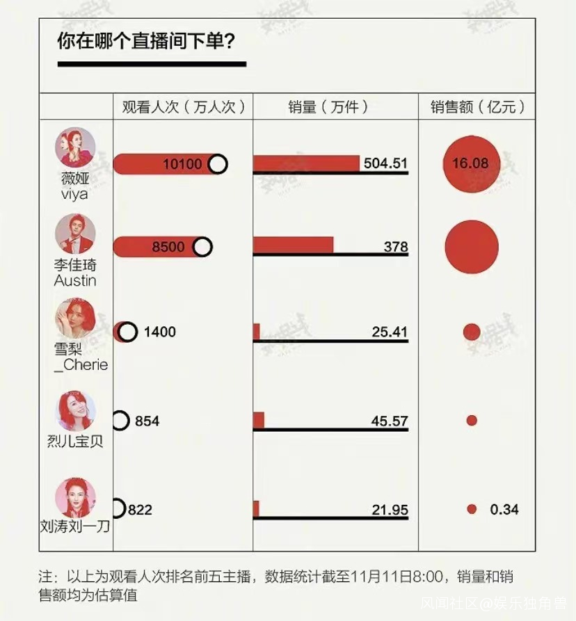 **其二,從明星個體來講,這仍然是一個有人在退出、有人在入局的過程,而市場等待的其實是頭部明星主播的產生和洗牌。**劉濤,是明星直播帶貨中不容忽視的存在,“劉一刀”的名號在江湖上打響,雙十一期間她的直播間更是迎來了吳宣儀、李承鉉等明星。