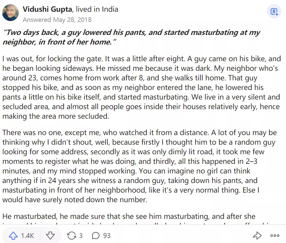 在這個問題下,印度女孩 Vidushi Gupta 以自己的經歷作答,獲得了1400+高贊。