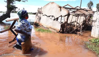 ● 2020年5月,肯尼亞的洪水沖垮了當地居民的房屋 © Bernard Ojwang / Greenpeace