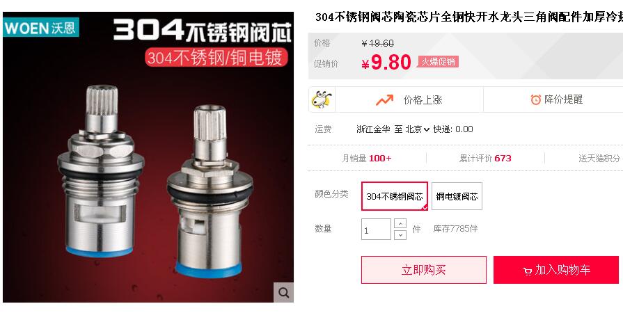 一個角閥35塊,上門費80塊,感覺可能有過度維修嫌疑(除非裏外都碎了)。自己換,找天貓,動態DSR評分發紅的商家,買不鏽鋼閥芯,會耐用些。9.8元包郵的旁邊有個黃銅合金鍍鉻的是6.8原價格。
