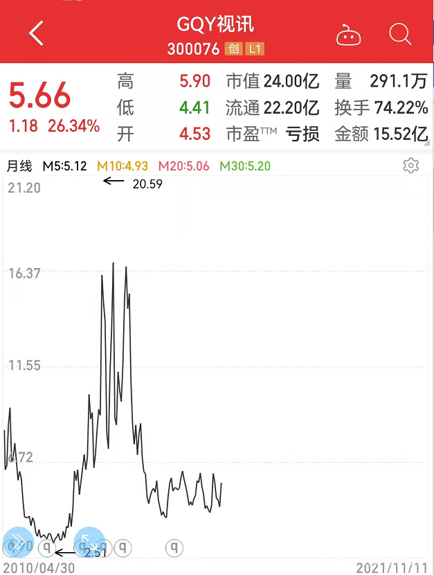 就如下圖這樣。股價從5元錢被炒高到16元,然後再跌回到5元。