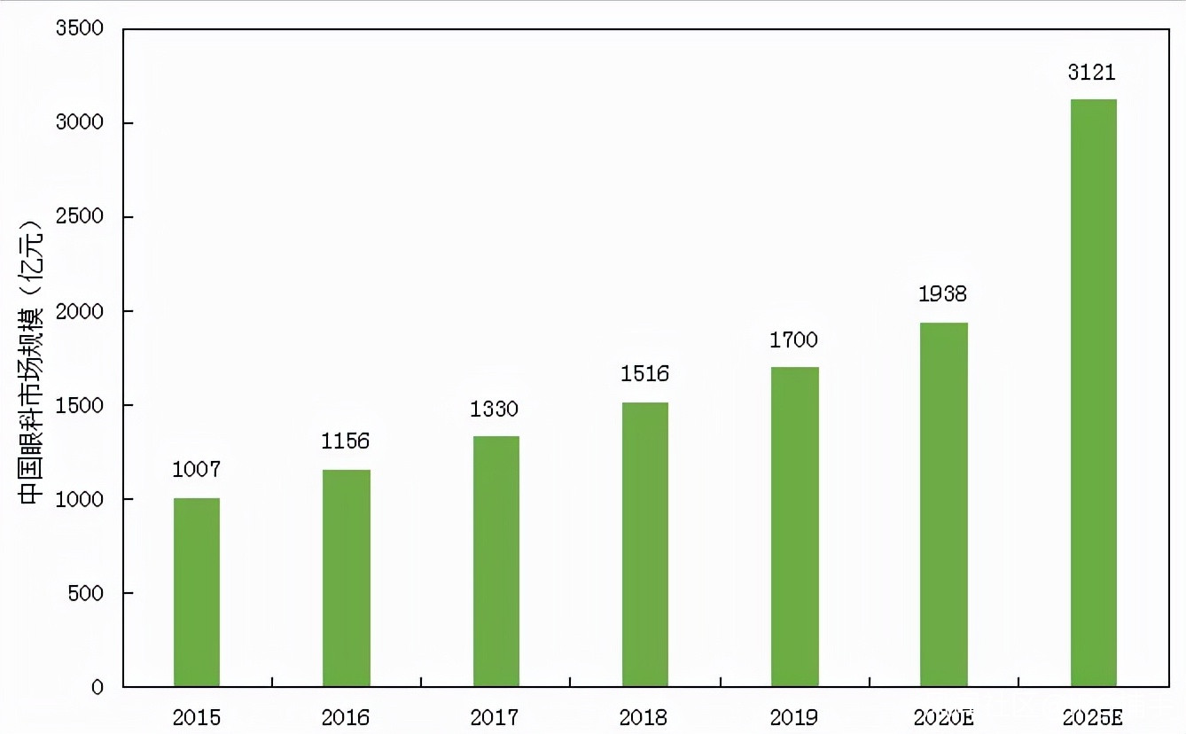 根據Frost&Sullivan、《中國醫療器械行業發展報告》,我國眼科市場2019年總體規模達1700億元,預計2020年實現1938億元,到十四五末,將超過3100億元。