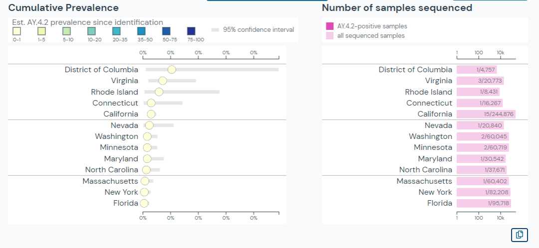 AY.4.2亞系在美國傳播的情況跟蹤圖丨來源:outbreak.info[4]