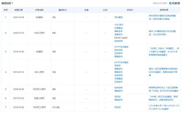 天眼查顯示,自2016年3月的Pre-A輪融資起,KK集團一共經歷了7輪融資,融資金額超過40億元,平均每年獲取一輪。