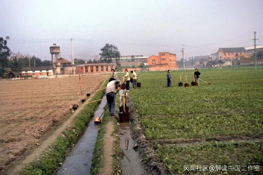 △1980年12月,四川省成都市,村民正在灌溉田地。(圖片作者:Marie Mathelin/Roger Viollet/Getty Images/視覺中國)