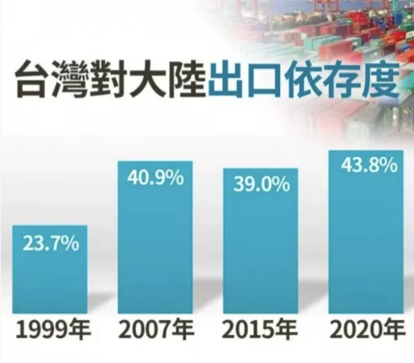面對出口貿易創新高,蔡英文高調慶賀,民眾黨卻直接痛批,蔡英文不敢説,台灣對大陸依存度也再創新高**。****從2016年起,對大陸出口依賴度從40.1%上升到2020年的43.9%。**台灣經濟如此依賴大陸,無疑是給蔡英文甩了重重的一記耳光,“狂賣芒果乾(‘亡國感’),卻對中國大陸孤注一擲”。