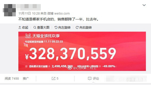 而除去消費者對雙11的優惠機制感到頭暈目眩,消費慾望沒有以往那麼強烈時,一些平台上的賣家也對這次的雙11感到頭大,因為銷售額和往年相比下降的有些厲害。