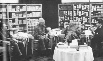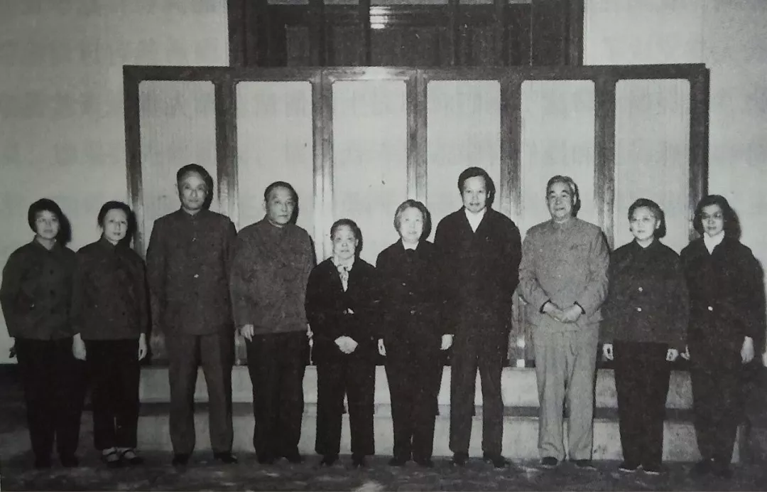 1976年4月15日,鄧穎超(右五)與楊振寧(右四)等合影,左四為熊向暉。(《我的情報與外交生涯》圖)