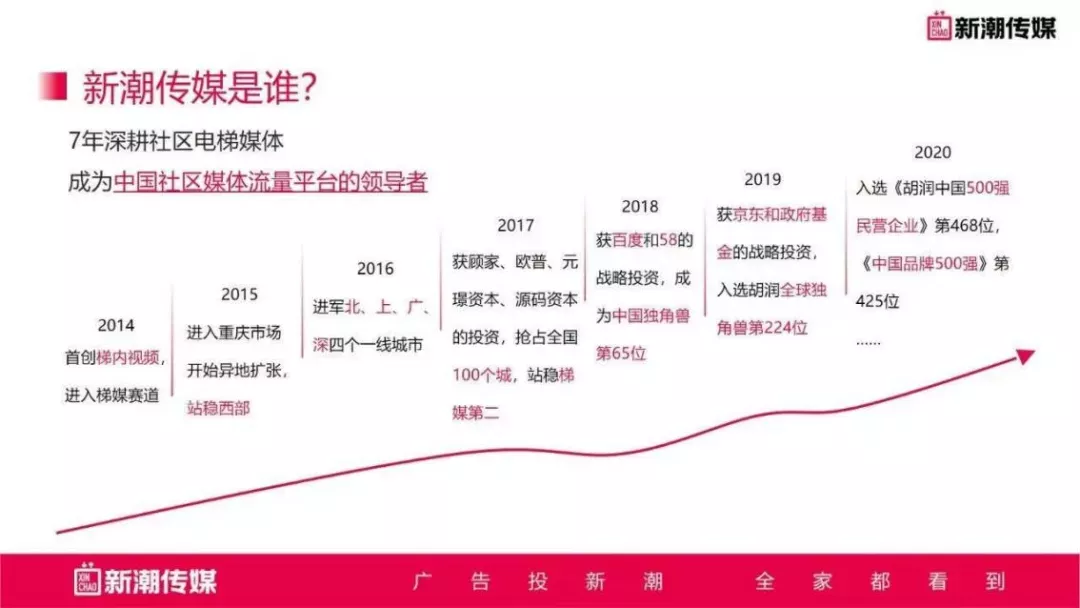 作為中國社區第一媒體平台,新潮傳媒紮根社區七年,在全國110座城市佈局了70萬部電梯智慧屏,覆蓋2億中產家庭人羣,為新消費品牌構建了龐大的線下流量池,利用“線下社區+媒體”重構社區營銷,成為新消費時代的“品牌引爆器”。