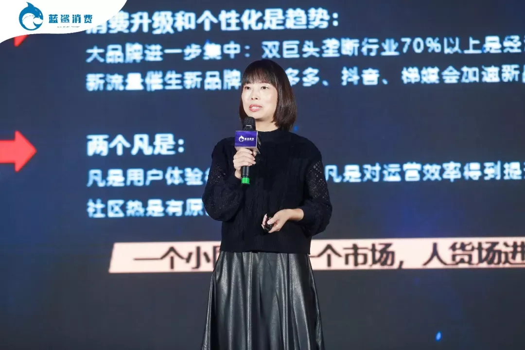 在本次峯會上,新潮傳媒集團合夥人、副總裁任月發表了題為《洞見新消費品牌下的社區營銷密碼》的演講。她認為,隨着消費領域人、貨、場的新變化,社區將成為一座值得挖掘的萬億級金礦。在抓住社區媒體流量紅利的基礎上,新消費品牌將會加速成長。
