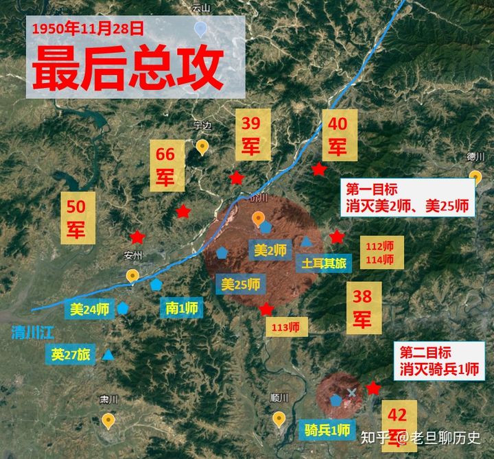 老旦點評1、42軍雖然沒有打下順川,但是同樣為第二次戰役做出了很大貢獻:由於42軍在側後的巨大威脅,美軍的主要預備戰力騎兵1師只能被迫待在順川防守(從電報上也能看出,其實主席給42軍的任務就是吸住騎兵1師,因為殲滅基本不現實),使得美軍始終沒有湊夠足夠兵力打通三所裏一帶的道路,最終導致美2師被徹底圍殲。