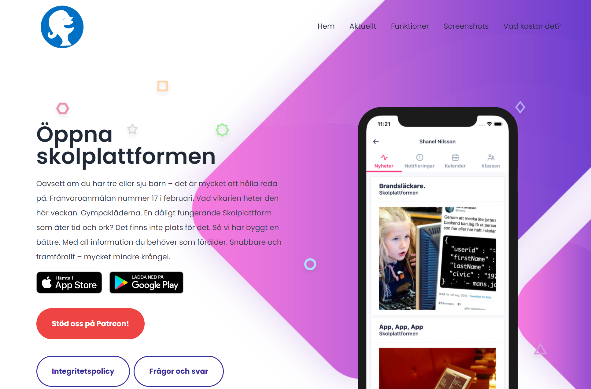 Landgren 的本職工作是瑞典一家初創諮詢公司 Iteam 的首席執行官兼開發人員,同時也是斯德哥爾摩市三個孩子的家長。早在 2020 年 10 月 23 日,他就在社交網站發佈了一張帽子設計圖,印有“Skrota(廢料) Skolplattformen”。幾周後,他決定自己重新創建一個應用。