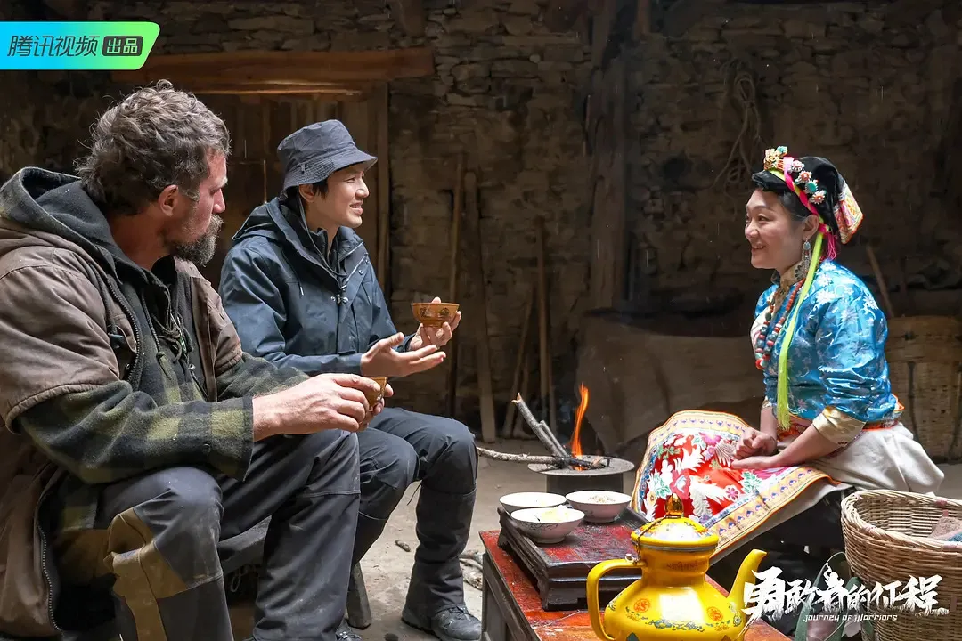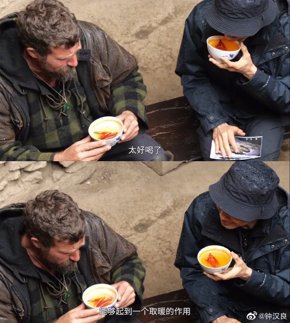 **今人不見古時月,今月曾經照古人。這種共時感體驗是奇妙的,鍾漢良和喬西·詹姆斯的路線可能和當年紅軍有重疊,甚至攀爬過同一塊石頭。**他們在叢林裏蒐集的沙棘果和羊肚菌,或許曾是紅軍當年賴以為生的一餐簡食。