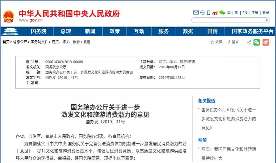 2019年8月,為貫徹落實《中共中央 國務院關於完善促進消費體制機制進一步激發居民消費潛力的若干意見》,國務院辦公廳印發了《關於進一步激發文化和旅遊消費潛力的意見》(國辦發〔2019〕41號),並明確提出,總結推廣引導城鄉居民擴大文化消費試點工作的經驗模式,新確定一批國家文化和旅遊消費試點城市;在試點城市基礎上,擇優確定國家文化和旅遊消費示範城市並動態考核。