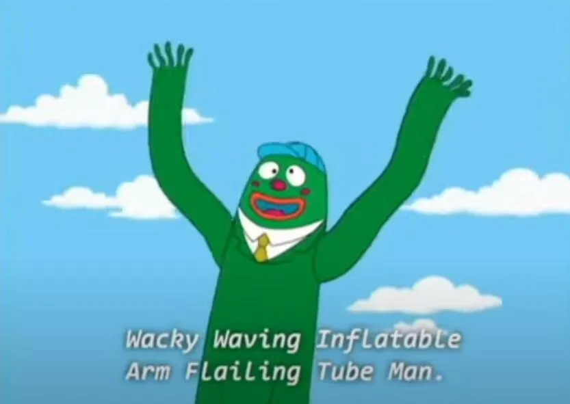 如果你是動畫《惡搞之家》的粉絲,那你一定還能一口氣説出它最拗口的那個名字:古怪的揮舞手臂的充氣式搖擺管人(Wacky Waving Arms Inflatable Flailing Tube Man)。
