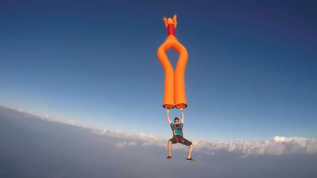 就算是在幾千米的高空,同樣有充氣人偶的粉絲讓它舞動了起來。